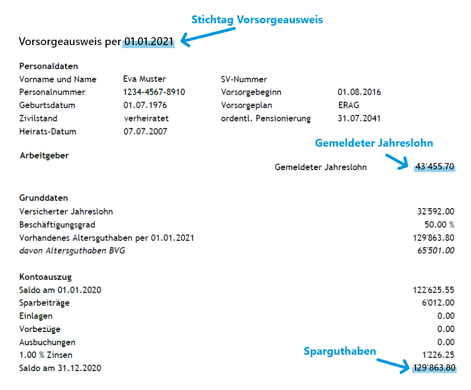 Mit dem Rentenrechner der Reformierten Landeskirche Aargau können Sie verschiedene Vorsorgeszenarien simulieren und die Auswirkungen auf Ihre persönlichen Vorsorgeleistungen analysieren. Damit wir Ihre Vorsorgeleistungen berechnen können, brauchen wir Ihre persönlichen Daten. Sie finden diese auf Ihrem aktuellen Vorsorgeausweis. Bitte füllen Sie alle Felder aus und klicken Sie auf «Berechnen».